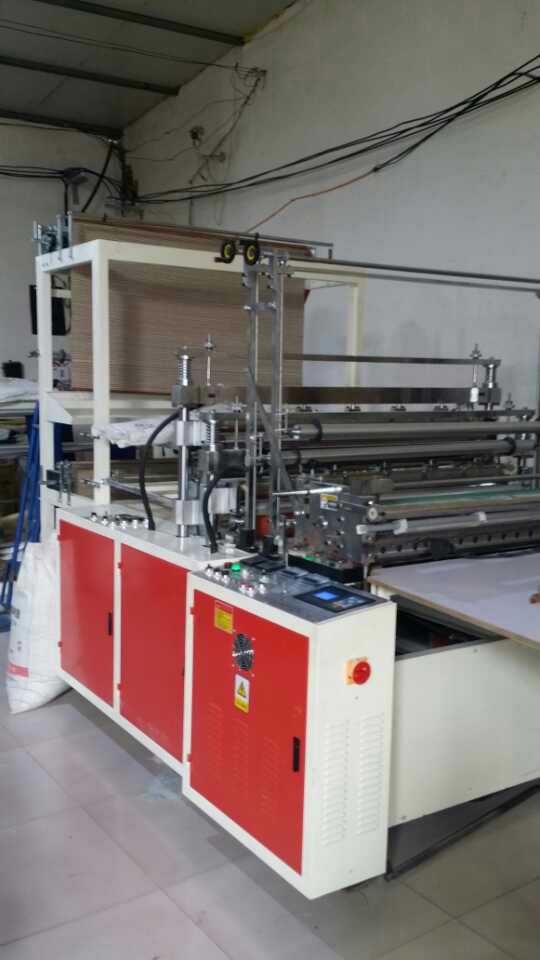 悅星1300型雙層制袋機配合1300型吹膜機,能大幅提升制袋效率,是企業生產的真正良機。圖片為出廠前調試。